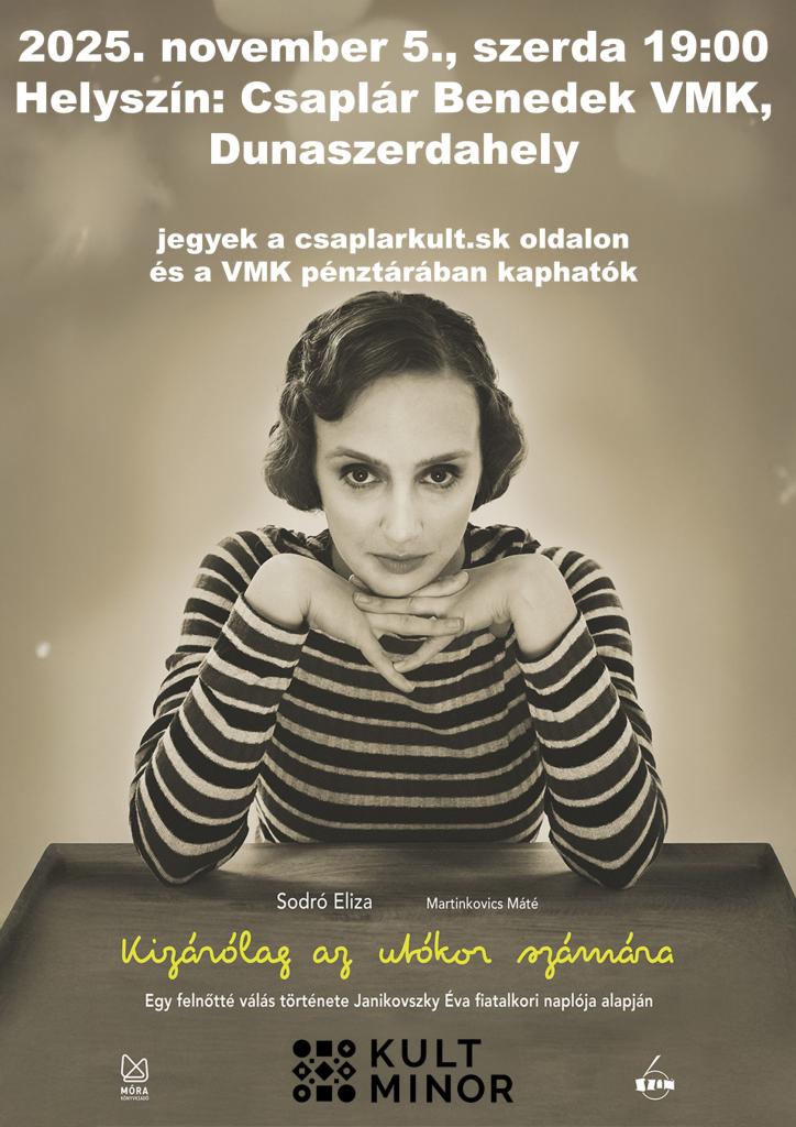 Občianske združenie NFG vás srdečne pozýva na divadelné predstavenie s názvom „Kizárólag az utókor számára“,ktoré vzniklo na motívy denníka mladej Évy Janikovszky.