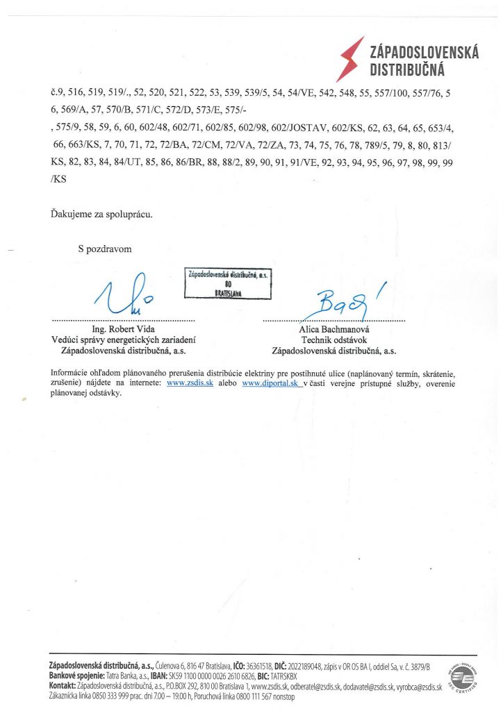 Prerušenie distribúcie elektriny 13.03.2017