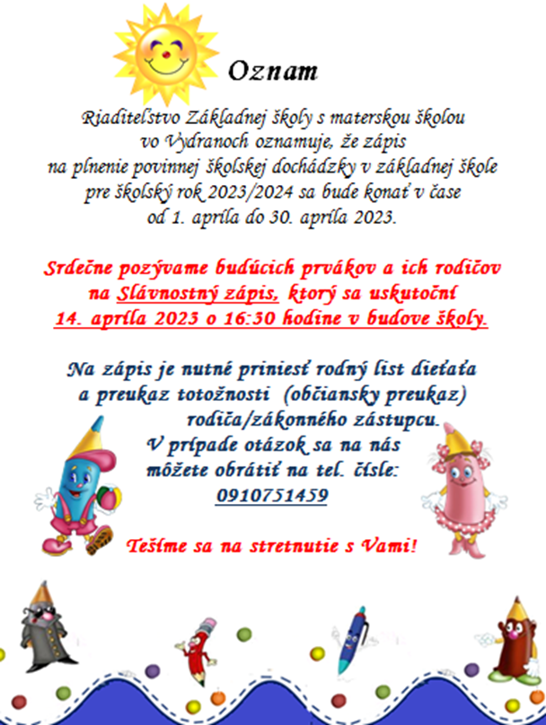 Zápis pre školský rok 2023/2024