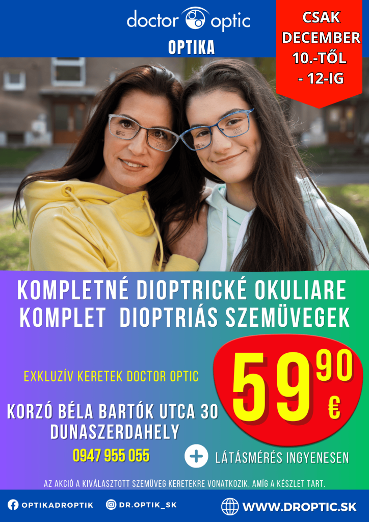 Nezabudnite, táto akcia platí len tri dni – od 10. do 12. decembra. Tešíme sa na vás! Očná optika Doktor Optik