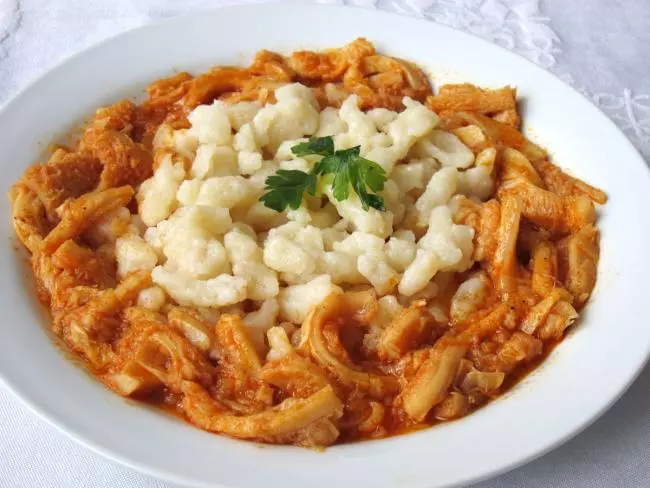 Držkový perkelt a halušky - Pohostinstvo „Állj meg vándor“